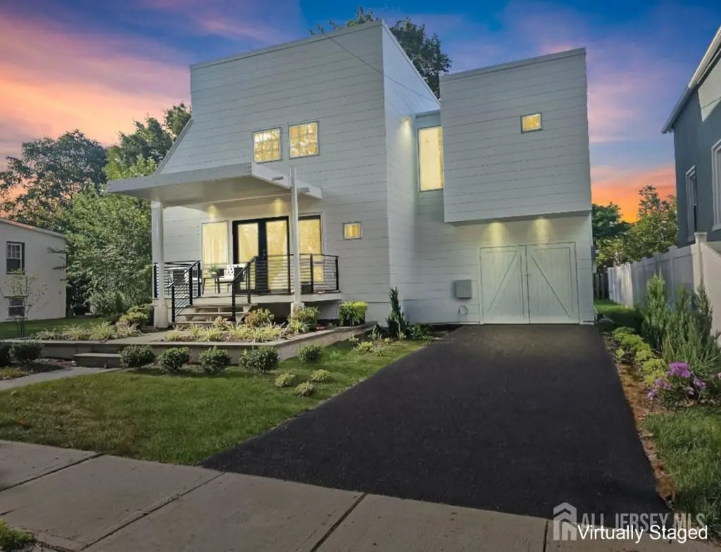 Welcome to 15 School St, Metuchen NJ - a stunning modern-style home blending thoughtful design with new construction upgrades. Originally built on a 1952 foundation and completed in 2025. Inside you'll find a sun-filled layout featuring large Pella casement windows, beautiful hardwood floors, recessed lighting throughout, a bright living room, modern kitchen/dining combo with tall kitchen cabinets, and a convenient half bath on the first floor. The space is perfect for everyday living and entertaining, with natural light pouring in through oversized windows and tasteful finishes throughout. Upstairs includes three spacious bedrooms with ceiling fans and large closets, a luxurious primary suite with tub/shower combo, sliding glass doors, and a peaceful sitting area ideal for reading. The finished garage can serve as a reflection nook and dog wash station, plus the home is EV charger ready, smart-wired, and full of high-end touches like Benjamin Moore paint, solid core doors, and a skylit staircase. The painted basement adds storage space, while a flat roof offers potential for a rooftop party deck. Wrapped in Hardie fiber cement siding with steel cantilever beams, cable railing, decorative rain chains, and a dry well for drainage, this home is move-in ready with unique character inside and out. Metuchen is home to a top-rated school system and is one of New Jersey's most sought-after locations. This property is just moments from downtown Metuchen's charming shops, restaurants, and the NJ Transit train station for an easy commute.