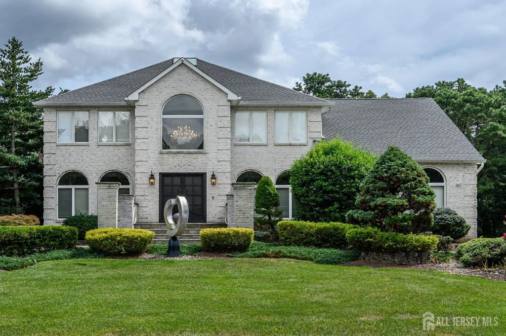 Stunning from the curb and remarkable within, this gorgeous 6 Bed 3.5 Bath Colonial with Master Suite, 2 Car Garage, Finished Walk-Out Basement and Resort-like Backyard is an entertainer's paradise inside and out. Boasting over 3000+ sq ft of finished living on 3 private acres in a quiet cul-de-sac, complete with In-Ground Pool, a regulation sized Basketball Court, boccee court, gazebo and more, just pack your bags and move right in! Stately circular driveway, brick front, double door entry, and grand 2 story foyer welcome you in to find a spacious and sophisticated interior with generous room sizes, luxury floors that shine, custom moldings, and plenty of natural light all through. Formal living room and elegant dining room make dinner parties a breeze. Gourmet Eat-in-Kitchen will impress any home chef, offering sleek SS appliances, gorgeous granite counters, ample cabinet + pantry storage, recessed lighting, soaring cathedral ceiling with skylights, and center island that is ideal for gathering. Serene family room features another cathedral ceiling that truly opens up the space, along with a cozy fireplace with floor to ceiling mantle with recessed lighting and large picture windows, bringing in tons of natural light. Down the hall, find 1 bedroom for accessible one level living, along with a convenient 1/2 bath and laundry room. Upstairs, find the main full bath along with 4 more generous bedrooms, inc the blissful Master Suite. MBR boasts its own walk-in closet and luxe ensuite bath with dual vanity, stall shower, soaking tub and skylight. Finished walk-out basement adds to the package, offering a large rec room with wet bar, versatile bonus room, and private bedroom with attached full bath. Resort-like backyard features a deck, large in-ground pool with patio surround, oversized gazebo, peaceful koi pond, regulation sized basketball court, boccee court, and oversized 2 car garage for plenty of guest parking. The list of incredible features goes on! Don't miss out! Truly, a luxurious, Move-in-Ready MUST SEE!!