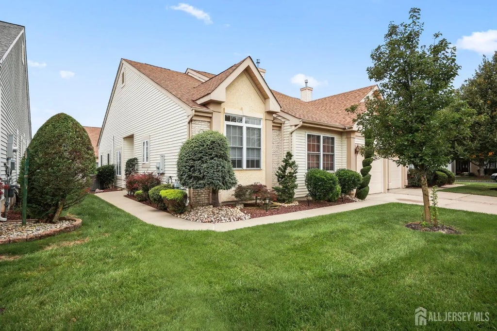 Serious Price Adjustment...Immaculate and Extremely Well Maintained 2 Bedroom, 2 Full Bath Essex Model In Highly Sought After Greenbriar at Whittingham. Large, light and bright kitchen with separate area for dining. Classic white cabinets with a stained glass door adds a touch of character and artistry. Granite ctops and included matching granite dinette set. Full stainless steel appliance package. An open and spacious dining room and living room with soaring ceilings showcasing gleaming hardwood floors are perfect for both entertaining and everyday use. 2 skylights add natural light. A generous sized primary bedroom suite with multiple closets plus an additional walk in style closet, all designed to accommodate a substantial wardrobe. Ensuite primary full bath with dual sinks/cabinets, soaking tub and stall shower. This comfortable single-level home features a second bedroom and full bath, offering a complete and convenient living space, all on one floor. Additional features include an attached single car garage, laundry room and a low maintenance paver patio. Greenbriar at Whittingham offers a 30,000 sq. ft. clubhouse that includes a suite of amenities and activities that set the standard for 55+ communities. This beautiful community is also close to shopping and restaurants. Don't miss the opportunity to make this your next home!
