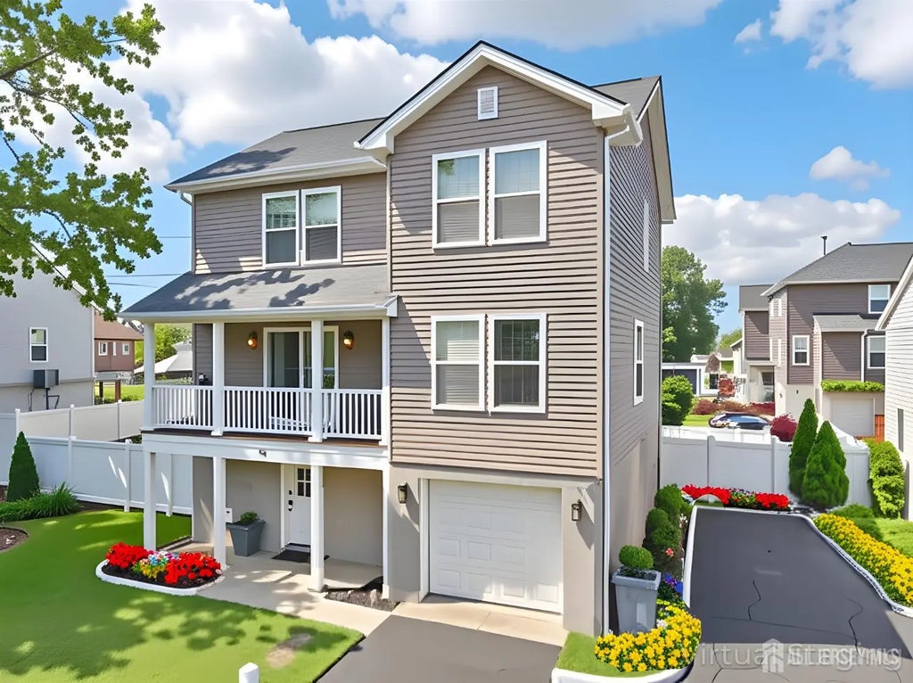 Welcome to shore living at its finest in the booming Bayshore town of Union Beach, where stunning views of the Manhattan skyline are just a few blocks away at the newly enhanced beachfront. This gorgeous 2016 built colonial sits proudly on an impressive 100 x 100 lot, offering the perfect blend of open-concept living, coastal charm, and suburban convenience. With three spacious bedrooms, 2.5 bathrooms, and over 1,600 sq. ft. of beautifully designed living space, this turn-key home is ready for its next owner to move right in and start living the dream. This completely open floor plan is perfect for entertaining and everyday living. The kitchen, featuring rich cherry cabinetry, a center island and stainless steel appliances; ideal for the home chef or hosting gatherings. A sliding glass door off the kitchen leads to a brand new deck, opening to a massive backyard that will cater to all of your entertaining needs. Whether you envision summer barbecues, backyard games, or even your own custom pool, the expansive yard offers endless possibilities. The primary suite offers a walk-in closet and an elegant en-suite bath. The remaining bedrooms, with amazing natural light, have ample space and large closets. There is also an additional flex room on the third level to use as a media room, playroom, walk in closet or an office! Additional highlights include a front balcony, a single garage, ample driveway and street parking and a basement with oversized storage space. There's also a security system for peace of mind and a shed in the backyard for all your outdoor storage needs. Perfectly positioned just minutes from the Parkway, NYC bound ferries and bus routes, commuting is a breeze. Don't miss your chance to be part of the exciting growth in Union Beach. Homes like this don't last! **some photos are virtually staged/enhanced**