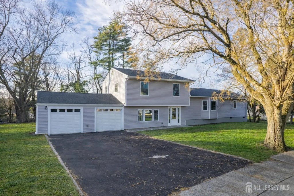 Exquisite Modern Renovated home - Turn-Key Perfection! Discover this beautifully updated home, where classic suburban architecture meets contemporary luxury. Freshly renovated throughout, this move-in-ready property features an open-concept design, premium finishes, and abundant natural light on a spacious, wooded lot with peaceful surroundings. Light gray vinyl siding, attached two-car garage, and a generous asphalt driveway. Mature trees framing the property for added privacy and curb appeal. Practical bi-level layout with entry at garage level leading to expansive living spaces above. Stunning open-concept living and kitchen area with soaring vaulted ceilings, gleaming hardwood floors, and oversized windows flooding the space with light. Modern kitchen boasting shaker cabinetry, quartz countertops, a large center island with pendant lighting, stainless steel appliances, and stylish subway tile backsplash. Spacious bedrooms with ample natural light, ceiling fans, and closet space. Expansive finished basement perfect for entertaining, featuring hardwood floors, recessed lighting, and sliding glass doors to the backyard