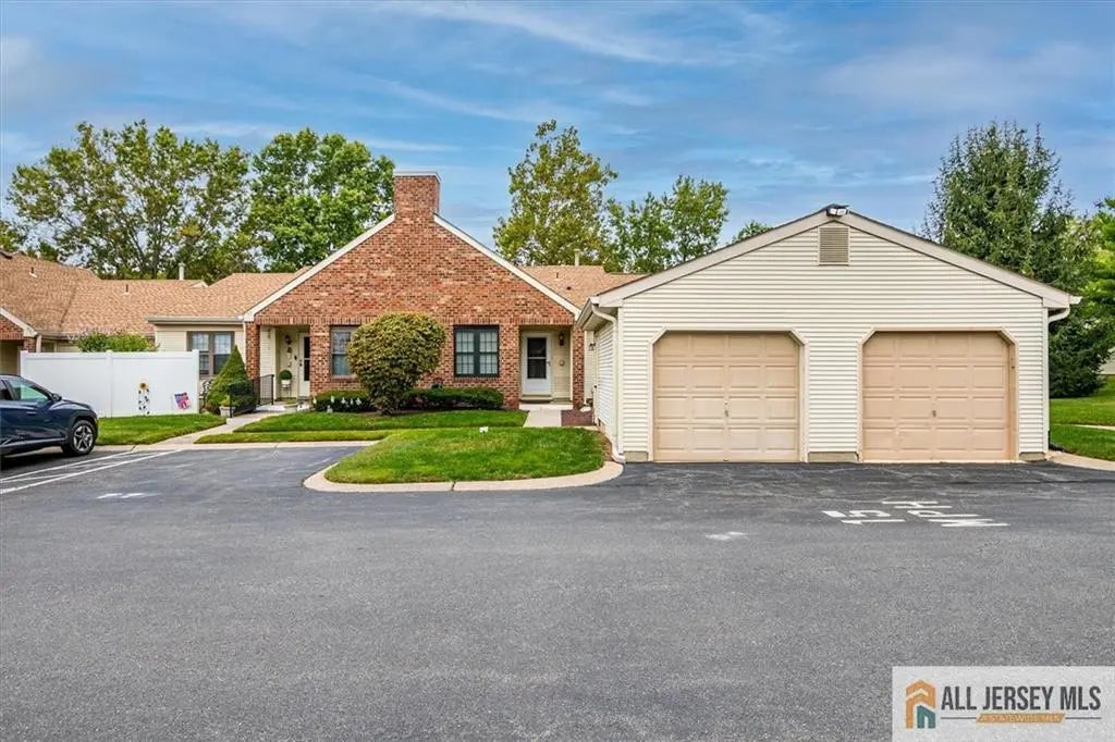 Welcome to The Club at East Brunswick, an inviting 55+ community offering serenity and convenience. This spacious, East-facing 2-bedroom, 2-bath condo features an inviting layout with an eat-in kitchen, a formal dining room, and a bright living room complete with skylights and a cozy wood-burning fireplace. Sliding glass doors lead to a private patio, perfect for morning coffee or relaxing outdoors. The primary bedroom provides a comfortable retreat with a full bath and walk-in closet. The second bedroom and full bath offer space for guests or a home office. A detached one-car garage directly in front of the home adds extra storage and convenience, and provides seclusion for a front garden space. The home offers a laundry room and plenty of storage with a utility closet, two foyer closets and kitchen pantry. Lovingly maintained with new updated windows and sliding glass door! Residents of The Club enjoy a wealth of amenities, including an outdoor pool, clubhouse, game room, exercise facilities, and tennis courtsideal for staying active and social. With its desirable location and welcoming community atmosphere, this condo is ready to be your next home!