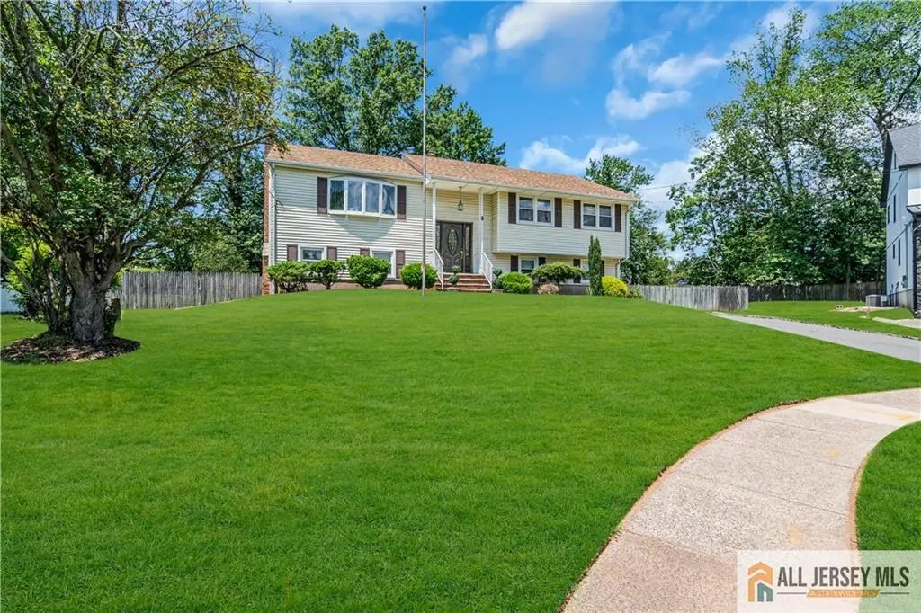 Tucked on a peaceful cul-de-sac, this 3-bedroom, 2.5-bath bi-level offers exceptional space and one of the largest park-like lots in all of North Edison. Sun-filled formal living and dining rooms flow to an eat-in kitchen with easy access to a generous deck, perfect for entertaining. The spacious family room on the lower level opens to the backyard and provides flexible space for gatherings, a playroom or a home gym. A private primary ensuite with full bath and an attached two-car garage complete the picture. Central AC for cooling, forced hot air for heating, NEW hardwood floors on the 2nd floor are just a few features to mention! Outside, the expansive yard is a dream: fully fenced and ready for everything from summer barbecues to soccer games under the trees. All of this in a prime location close to top-rated schools like JP Stevens HS, St Joseph's HS in Metuchen and Wardlaw Hardtridge in Edison, NYC transportation by train & bus, shopping, dining and much more! A MUST SEE.